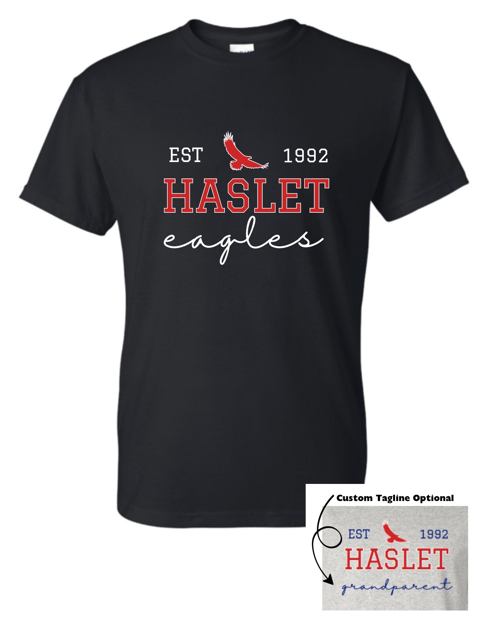 Show your eagle pride with this customizable Haslet 24-25 Spirit Shirt! Perfect for students and parents/grandparents alike, this classic shirt displays the Eagles EST 1992 tagline. Let everyone know you're part of the eagle family with this spirited shirt. Go eagles!
